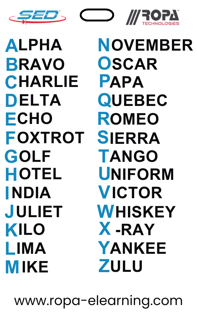 ROPA Phonetic Alphabet Cards use an internationally standardized phonetic alphabet to clarify spoken communication, particularly when spelling out critical information.